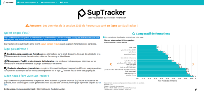 Lycée - SupTracker, un outil gratuit et indépendant rassemblant les données publiques de Parcoursup.